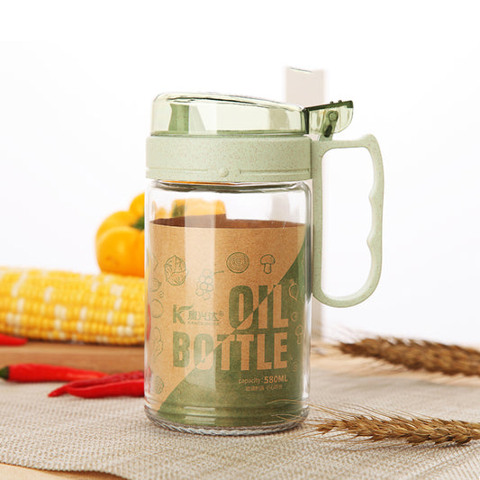 kitchen 580ml cooking olive oil bottle vinegar soy sauce storage container clear glass oil dispenser with handle
