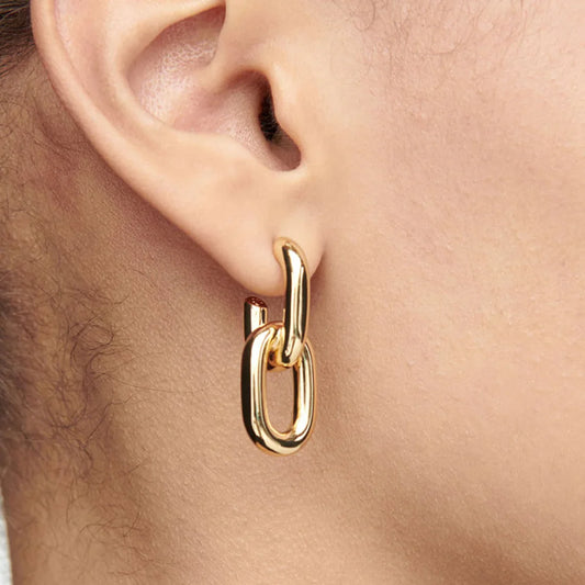 Stainless Steel Fashion Gold Color Geometric Square Hoop Earrings for Women Huggie Punk Hip-Hop Metal Round Circle Party Jewelry