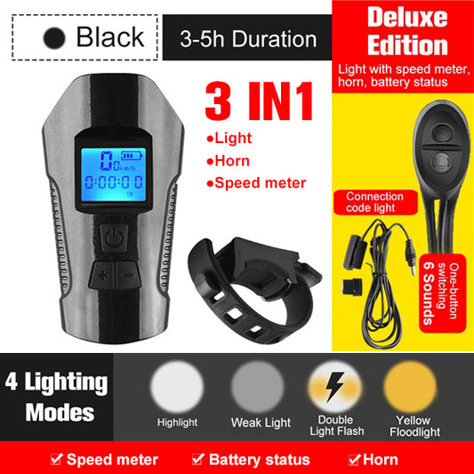 Waterproof Bicycle Light USB Rechargeable Bike Front Light Flashlight with Bike Computer LCD Speedometer Cycling Head Light Horn
