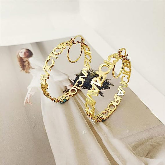 DUOYING Personalized name letter earrings custom name ladies round Circle Stainless Steel Hoop Earrings