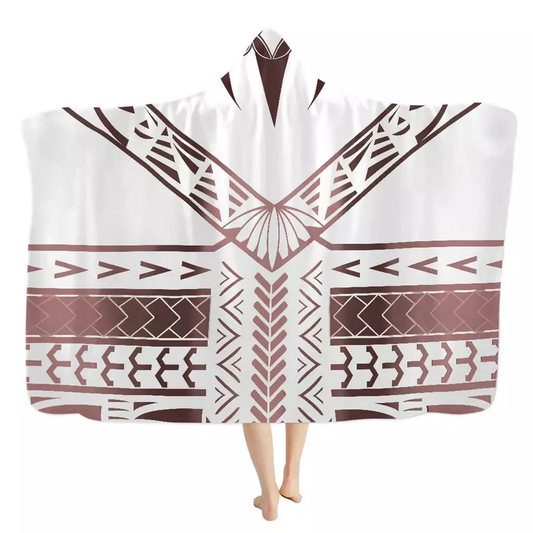 Polynesian Chuukese Half Tribal Geometry White Pattern Baby Hooded Blanket Fleece Picnic Wholesale Warm Winter Blankets for Bed