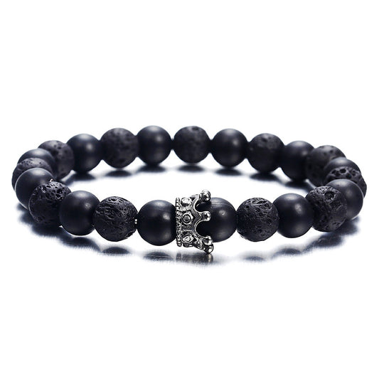 Black White Stone Crown Bracelets For Women Men Volcanic Couple Beads Cheap Bracelet Jewelry Custom
