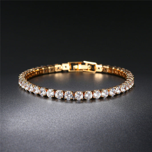 Gold Plated luxury 4MM Cubic Zirconia CZ Diamond Men Tennis Bracelet for Women