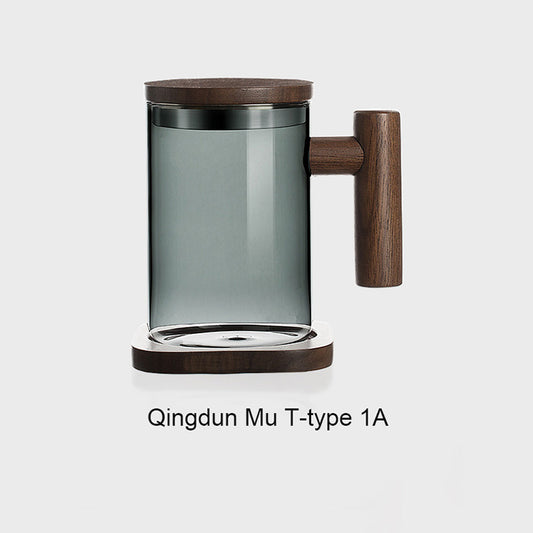New Design Chinese Cup Perfect Tea Juice And Coffee Cyan Clear Glass Mug With Infuser And Wooden Lid & Handle
