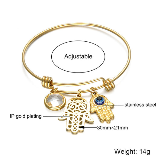 Fashion stainless steel blue eye Fatima hand Bracelet Turkish Blue Steel Wire Bracelet Islamic jewelry