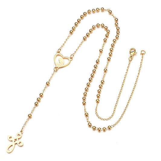 Virgin Mary Catholic Religious Gold Chains Plated Fashion Long Stainless Steel Necklaces Rosary Jewelry NZC004