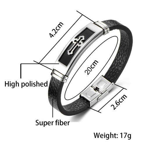 Cross-Border European And American Stainless Steel Trend Men's Bracelet Three-Leaf Cross Leather Bracelet Religious Jewelry
