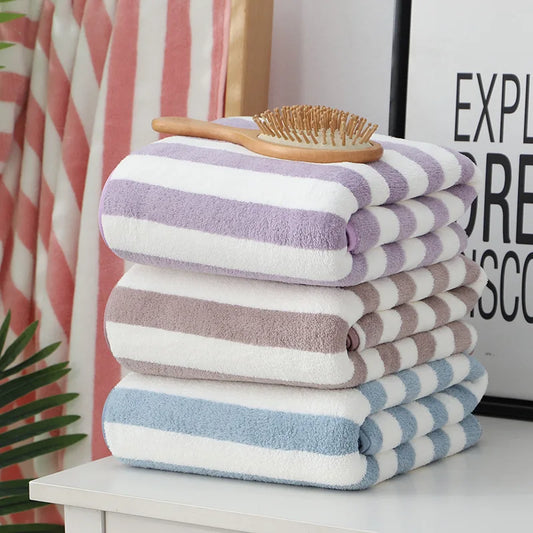 Super Hot Sale Absorbent Luxury Microfiber Coral Towel Soft Catonic Stripe Microfiber Bath Beach Pool Towel Stock 70x140cm