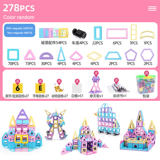 Macaron pink block magnetic designer building set model and construction toy plastic magnetic block educational toy