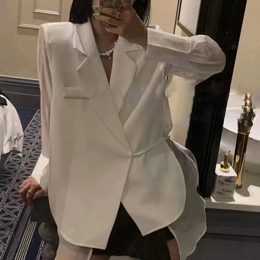 TWOTWINSTYLE Coat For Women Notched Collar Long Sleeve Solid Minimalist Lace Up Blazer 2022 New
