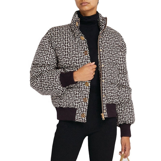 Winter Women Casual Cloth Female Puffer Coat Thicken Warm Outwear Ladies Digital Print Fashion Zipper Down Jacket