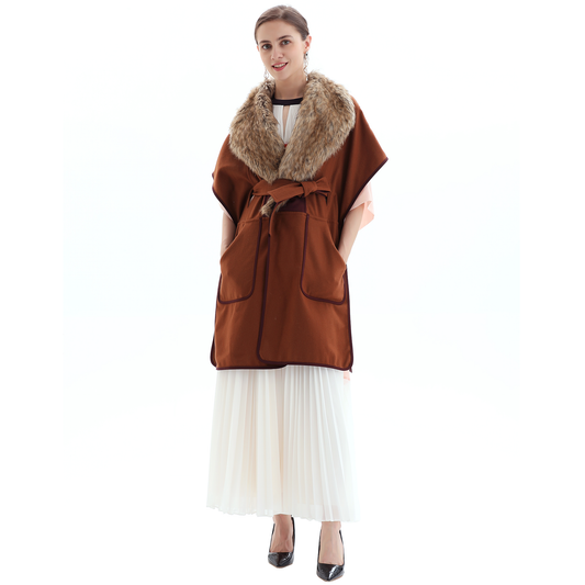 C118 2023 Fur coat women winter wear wrap woolen outer college jacket winter brown coats for women