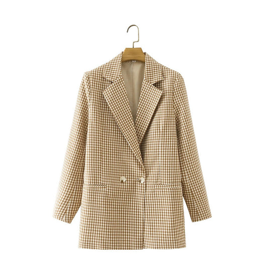 Fashion Clothing Fall Winter Casual Block Plaid Womens Ladies Women Tops Blazer Coats Long Sleeve Blazers