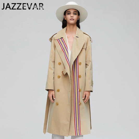 Factory special limited stock new arrival spring khaki trench coat women's casual fashion high quality cotton belted long coat