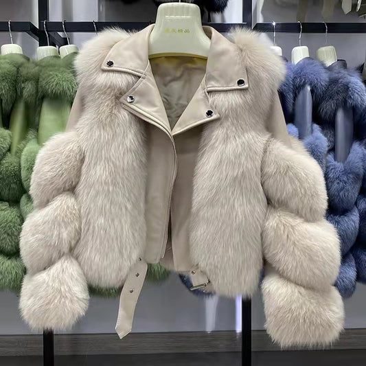Winter Women's Fur Coat Short Long Sleeve Thickened Casual Wool Sweater Fox Hair Slim Fit Coat