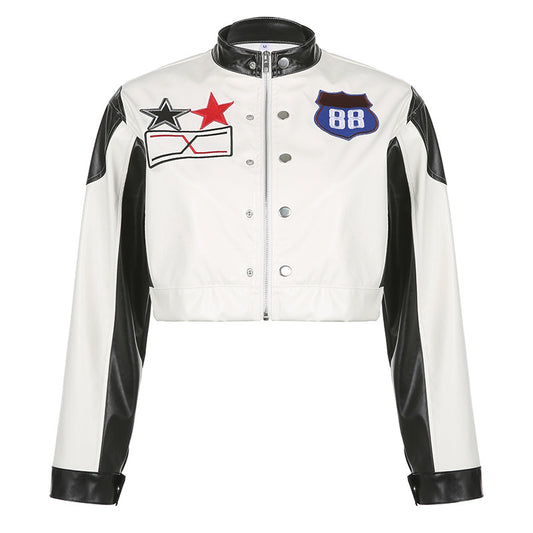 New Fashion Women Vintage Sport Style Bomber Coat Printed Zipper Long Sleeve Racing Jacket Women