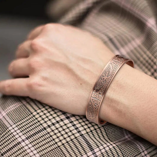 Pure Copper Magnetic Bracelet Open Closure Cuff Bangle with 18 Healing Magnets Trees of Life Vintage Jewelry Gift for Men Women