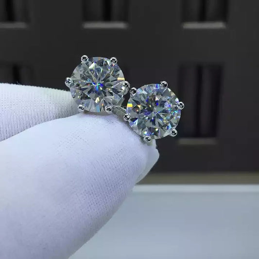 Silver 925 Original Diamond Test Past Total 6 Carat Round Brilliant Cut D Color Moissanite Stud Earrings for Women