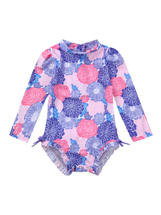 Baby Girls One Piece Swimsuit Kids Rash Guard Long Sleeves Ruffled Swimwear Bathing Suit for Infant 0-24 Months