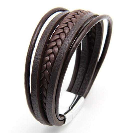 Braided black Blue Color Leather Bracelets for Men Armband Trendy Genuine Rope Leather Bracelets with Magnetic Buckle Jewelry