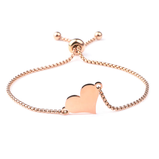 Adjustable Stainless Steel Tiny Chain Love Heart Bracelet for Women Jewelry