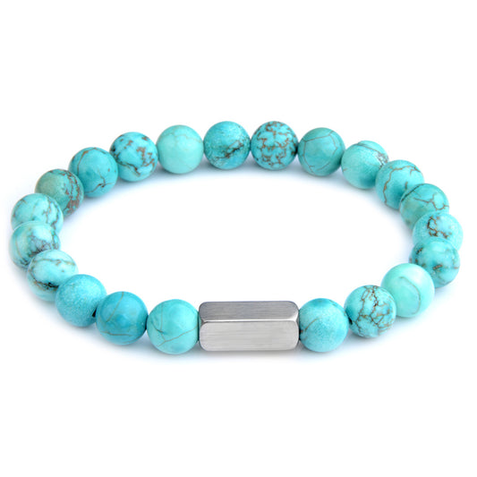 Square Custom Laser Engrave Logo Stainless Steel Charm Natural Stone Beaded Bracelet