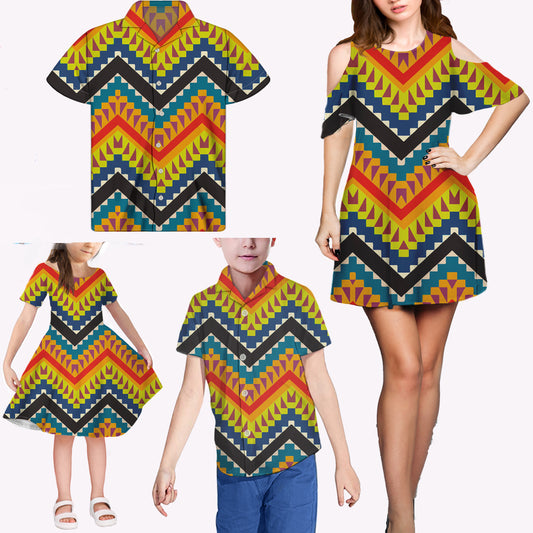 Womens Clothing 2021 Dress African Colorful Geometry Print Family Matching Man's Shirts Summer Kids Dresses for Girl Boys Shirt