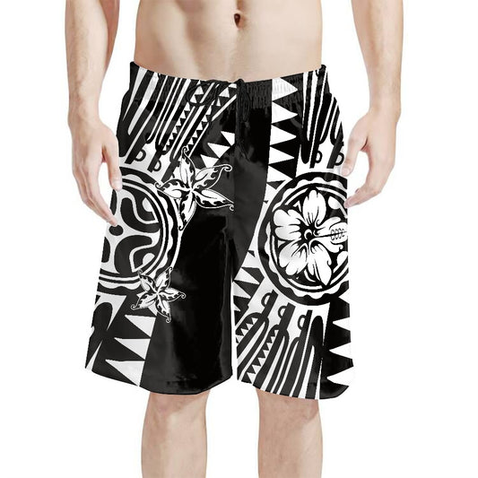 Hawaii Hibiscus Flower Polynesian Men's Shorts for Men Workout Swimming Shorts Quick Dry Beach Trunks Swimwear with Mesh Lining