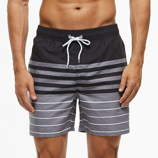 Men's Fashion Short Five-point Shorts Men's Beach Trousers Large Size Swimming Striped Dry Pants