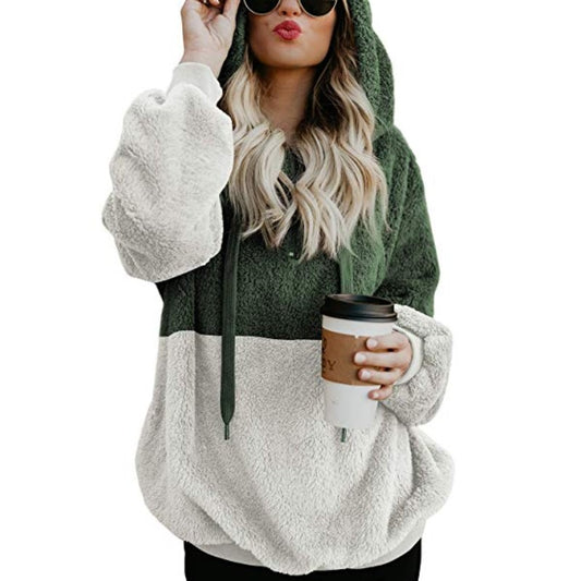 Winter Warm Fleece Sweatshirt Hoodie Women's Zipper Sherpa Knit Soft Fluffy Pullover Tops Tie Kangaroo Outwear Coats