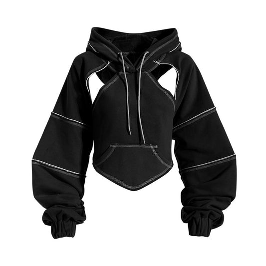 Back Bow Irregular Cut-out Sweatshirt New Hooded Long Sleeve Women Fashion Hoodies