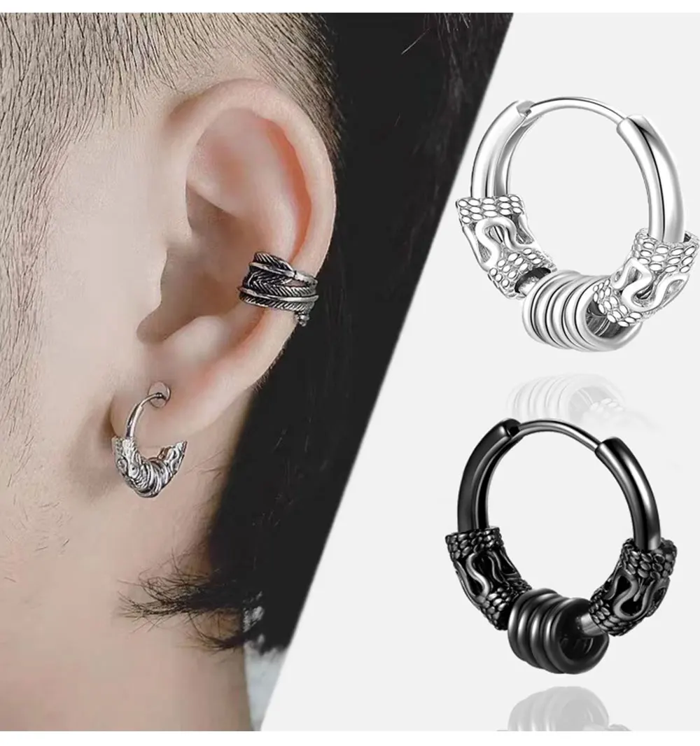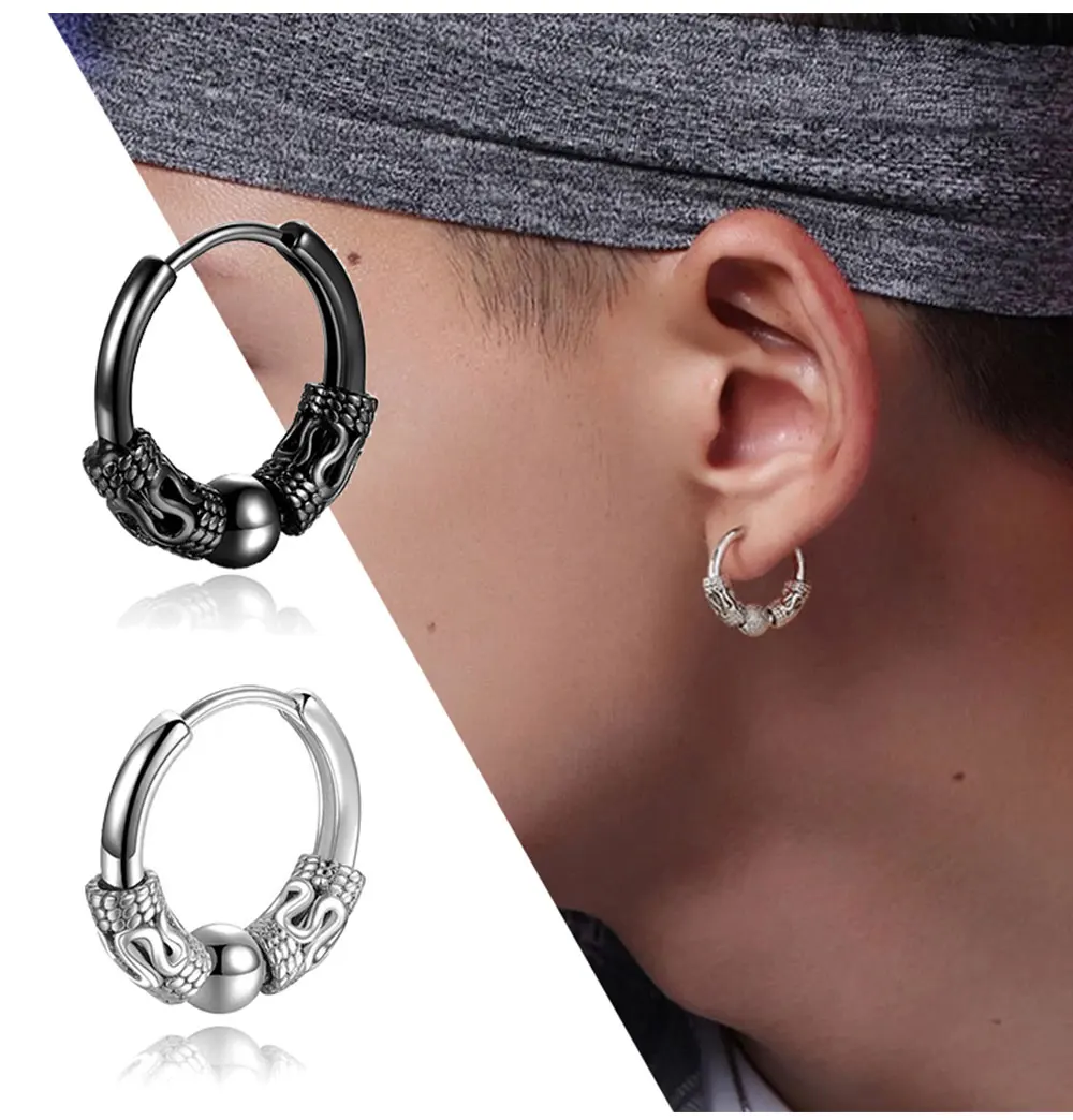 1Pair Punk Stainless Steel Round Circle Totem Hoop Earrings For Men Women Not Fade Ear Rings Hip Hop Male Jewelry