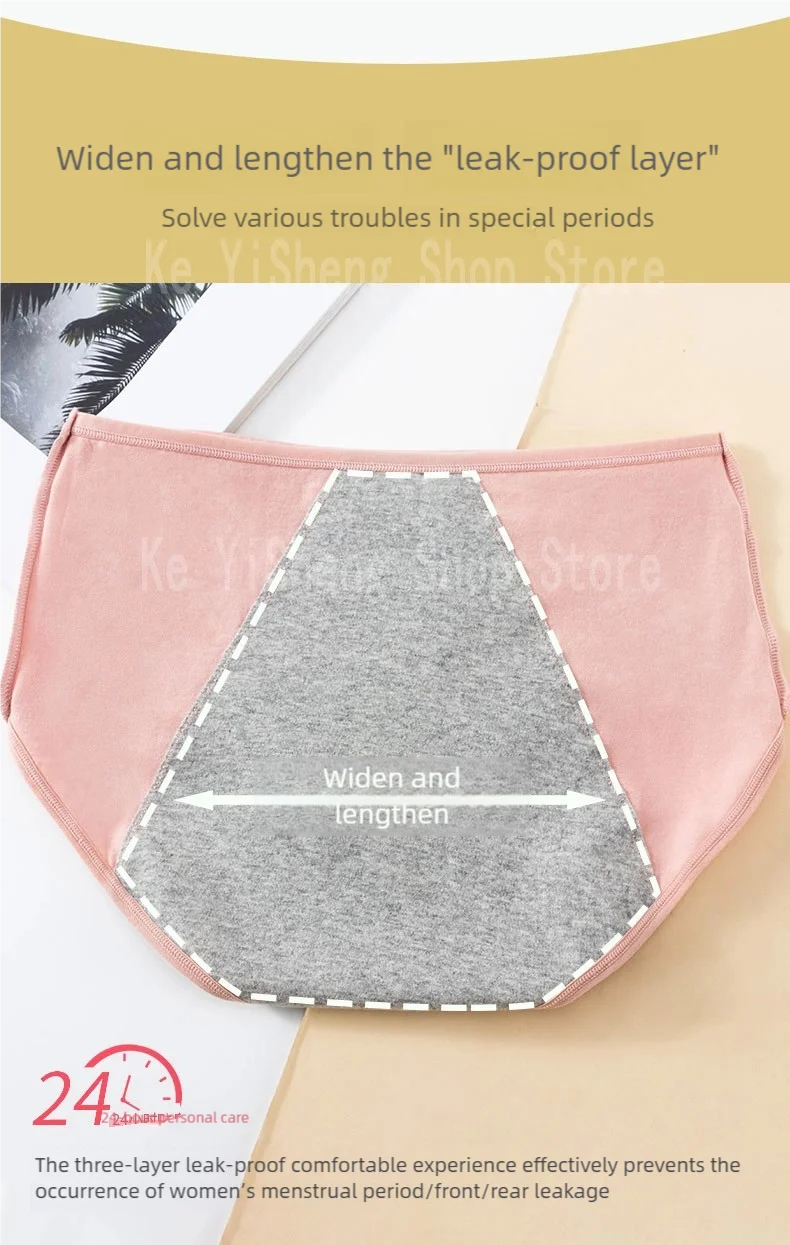 3PCS Women's underwear Physiological pants Cotton anti-side leakage cotton with breathable crotch period high belt pocket briefs