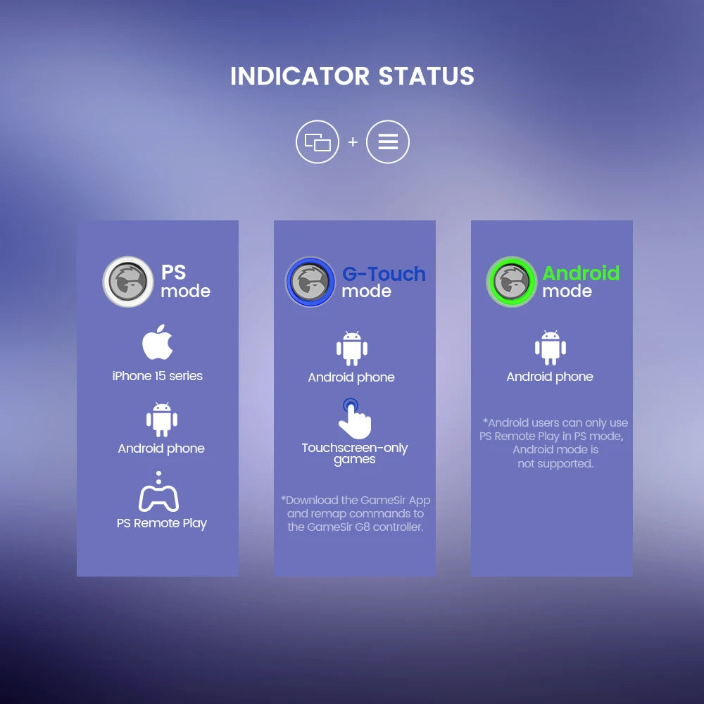 The GameSir G8 Galileo is purposefully designed for universal compatibility, featuring an extendable bridge and sufficient rear space to be compatible with a wide range of phone models. It's the perfect choice for mobile gamers seeking adaptability, ensuring a seamless gaming experience on the iPhone 15 series and Android.