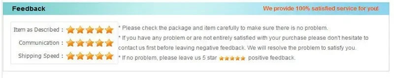 2.  Any problems,please do not hesitate to contact us at first time before OPEN CASE or leave Neutral / Negative Feedback with less than 4 stars rating, we always try our best to solve it for you!