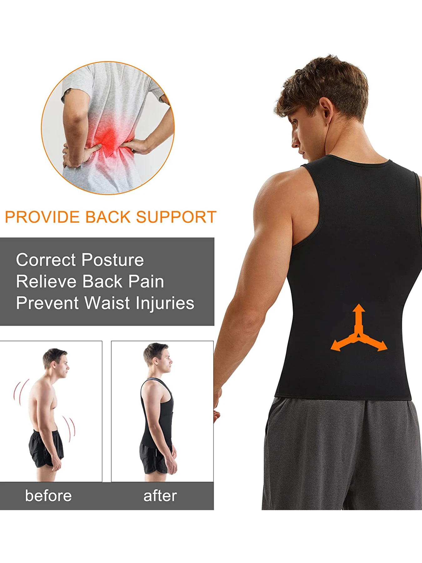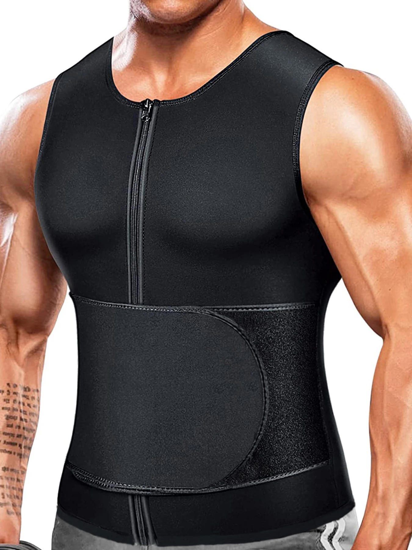 Men's Waist Trainer Body Shaper Sauna Sweat Waist Trainer Vest with Zipper Workout Sauna Suit with Adjustable Waist Trimmer Belt