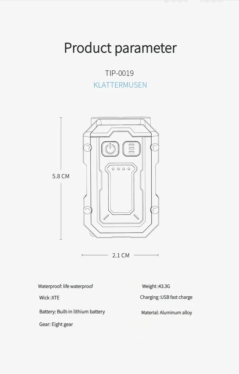 5. Multi-level light source adjustment, press and hold for 2 seconds to power on and click to switch gears