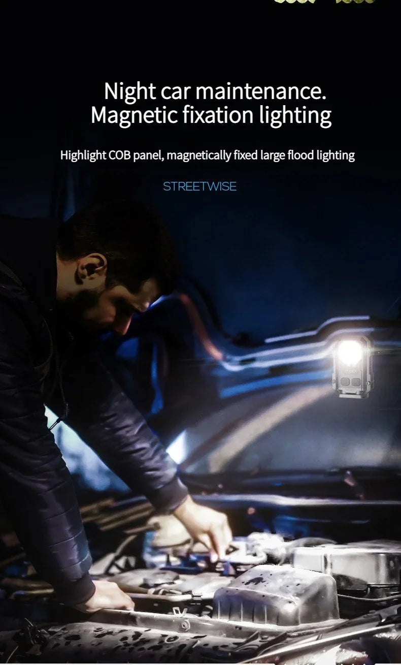 2. Magnetic fixed lighting for car maintenance at night, highlighting COB panel, magnetic fixed floodlight lighting