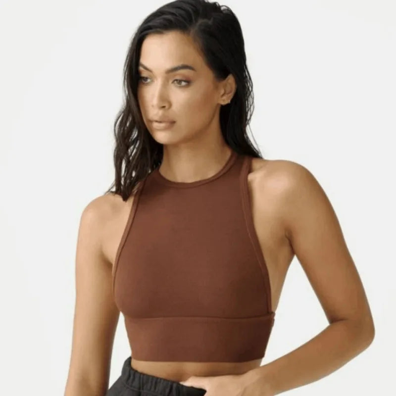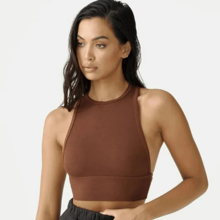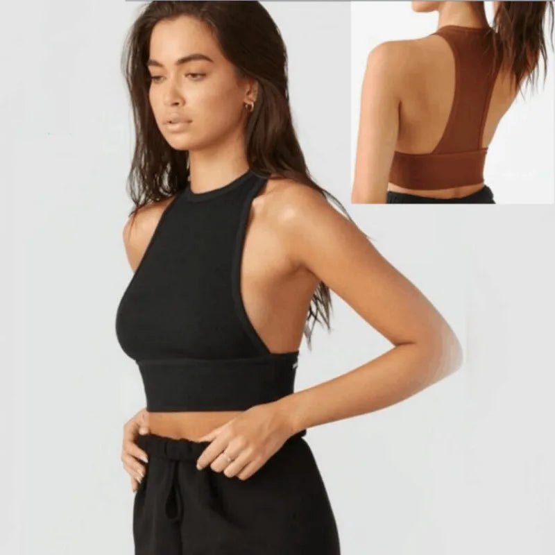 Sexy Fitness Sports Underwear for Women, Round Neck, Tight Back Top, Outdoor Running with Chest Cushion, Thread, 2024