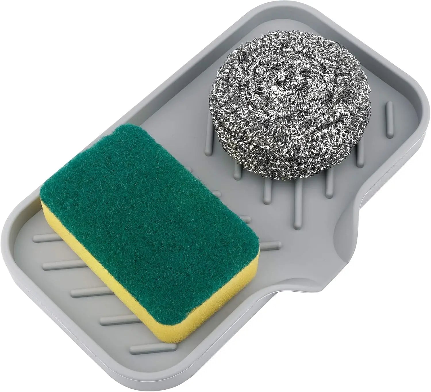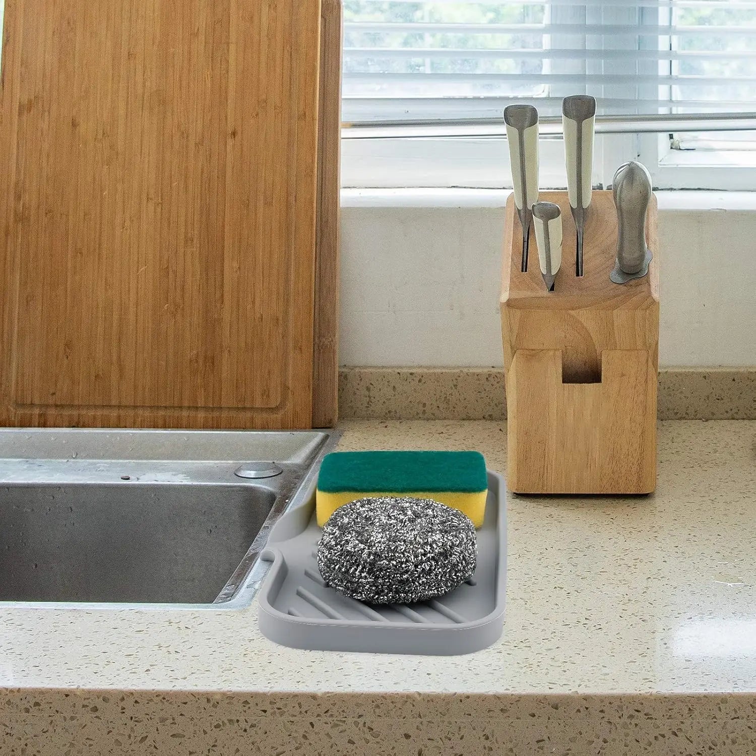 Silicone Kitchen Sink Tray Soap Tray Soap Dish Holder Sponge Holder with Built-in Drain Lip Countertop Sink Kitchen Organizer