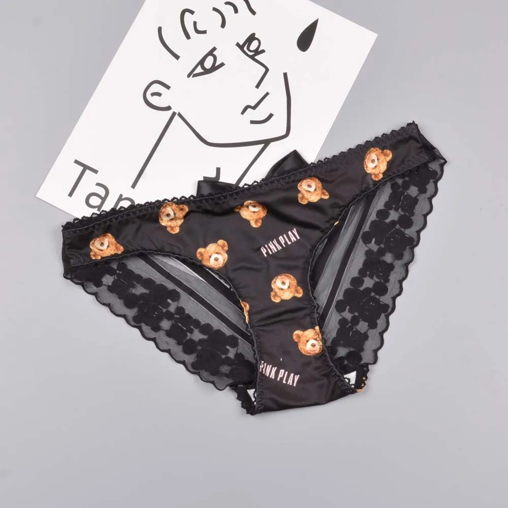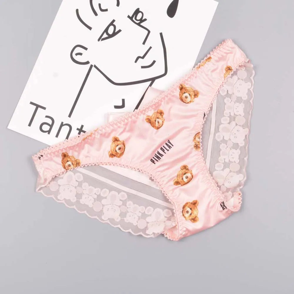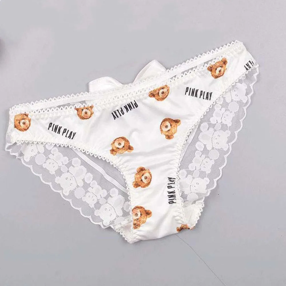 Women Cute Bear Panties Low Waist Lace Ruffled Kawaii Lingerie Milk Silk Underwear Female Lady Underwear