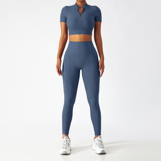 2022 Womens Fall Loungewear Ribbed Fabric Active Workout Wear 4 Piece Yoga Set No Front T Leggings Gym Clothing