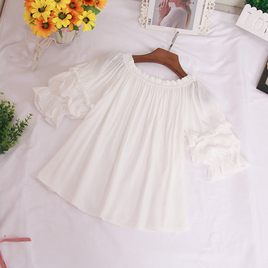 Boho Beach Summer Womens Tops and Blouses Elegant Ruffles slash neck Chiffon Blouse Loose tunic Shirt Ladies Plain blusa