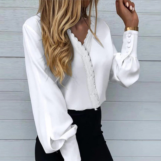 Hot New Fashion Women Top And Blouse Elegant Lace Floral Print Casual Shirts Long Sleeve V-Neck Work Wear Blusas Clothing