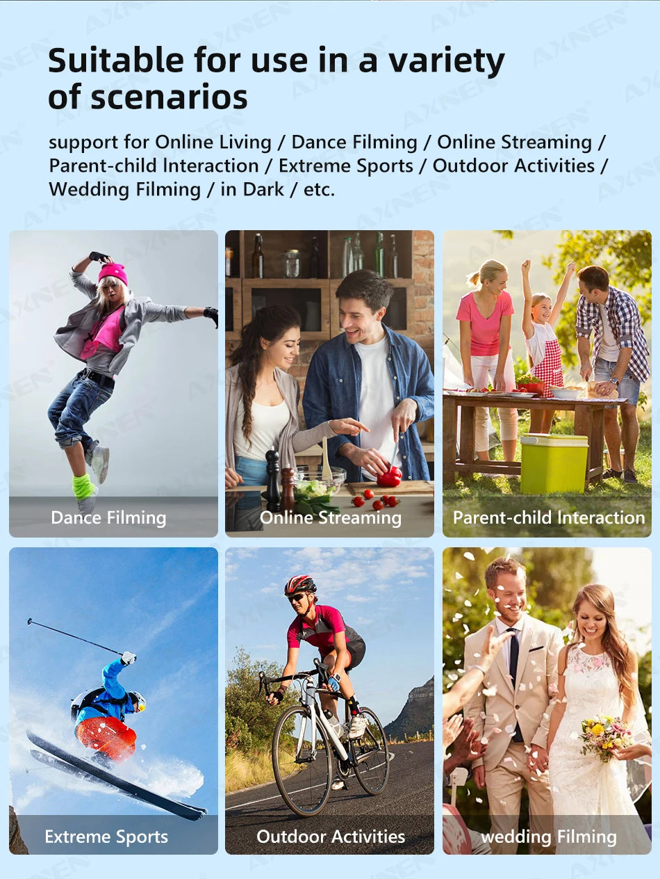 support for Online Living / Dance Filming / Online Streaming / Parent-child lnteraction / Extreme Sports / Outdoor Activities / Wedding Filming / in Dark / etc.