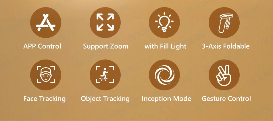 Tracking / Panorama / Time-lapse / Inception / Dolly Zoom / Gesture Control