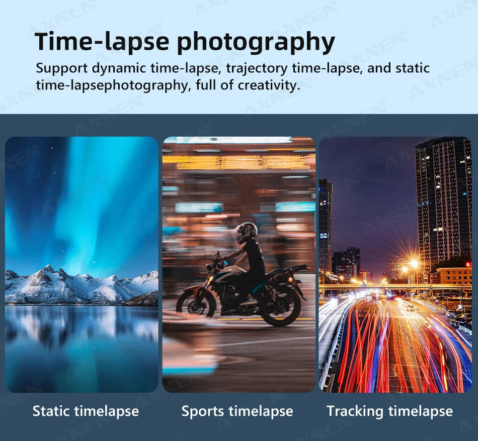 Support dynamic time-lapse, trajectory time-lapse, and static time-lapsephotography, full of creativity.