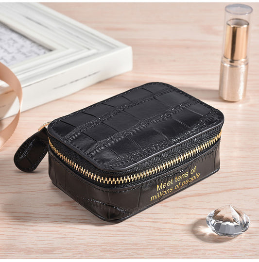 High quality real leather make up pouch square bag red women luxury make up bag for lipstick custom cosmetic bag