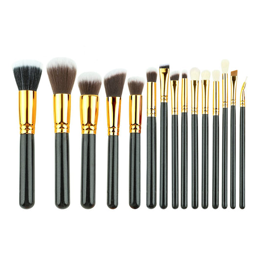 HMU Wholesale 15pcs Black And Silver Synthetic Hair Kabuki Vegan Custom Makeup Brush Private Label Make Up Brush Set With Bag