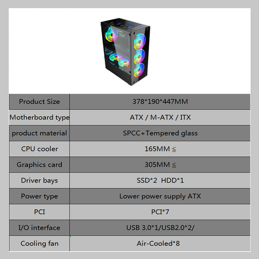 Hot-selling computer panoramic side through 8 fans for cooling hardware pc gaming cases & towers